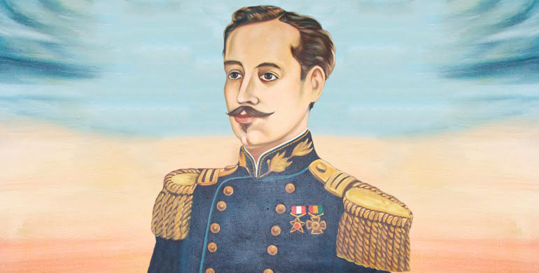 A los 13 años ingresa a la Escuela Militar del Espíritu Santo, viste el uniforme militar pasando revista como SOLDADO DISTINGUIDO. Y en el combate del "2 de mayo" de 1866, se le concede la clase de Alférez de Fragata.